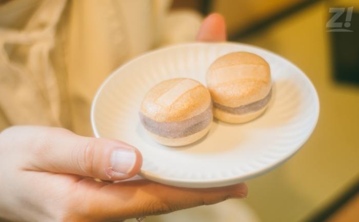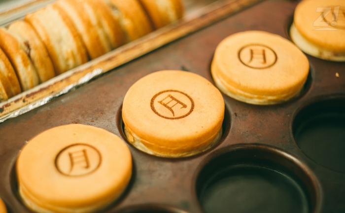 内容:「月」の焼印が入ったいちごあん入りのオリジナル回転焼きです。