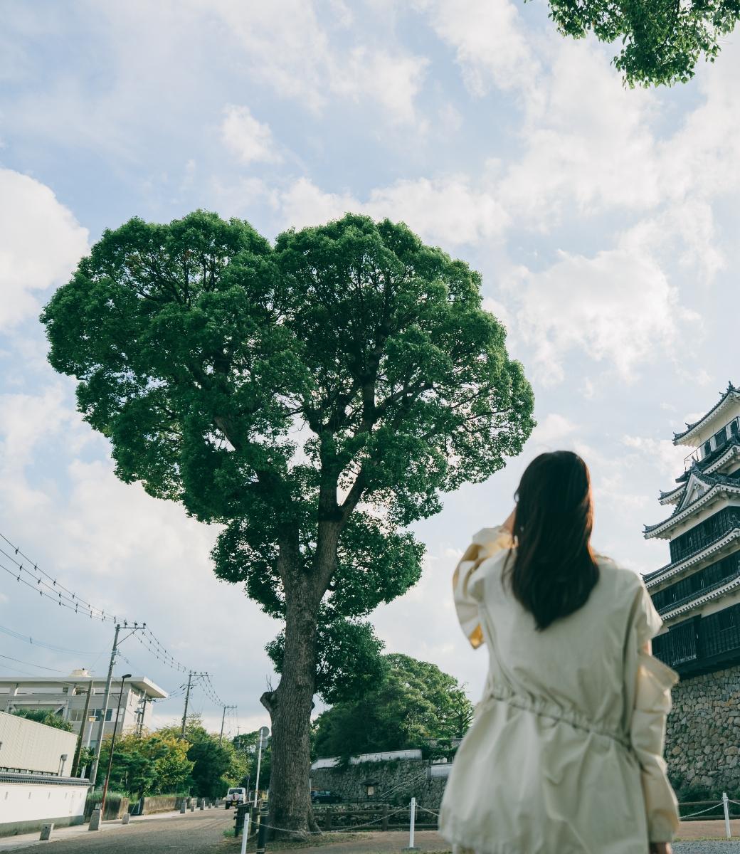 【ハートの木】中津城の下にある「ハートの木」は、物語にも描かれた特別な存在。葉の重なりがハートの形に見えることから、恋のパワースポットとして知られています。伝説では「木の下で告白すると、好きな人と結ばれる」とも言われています。 -