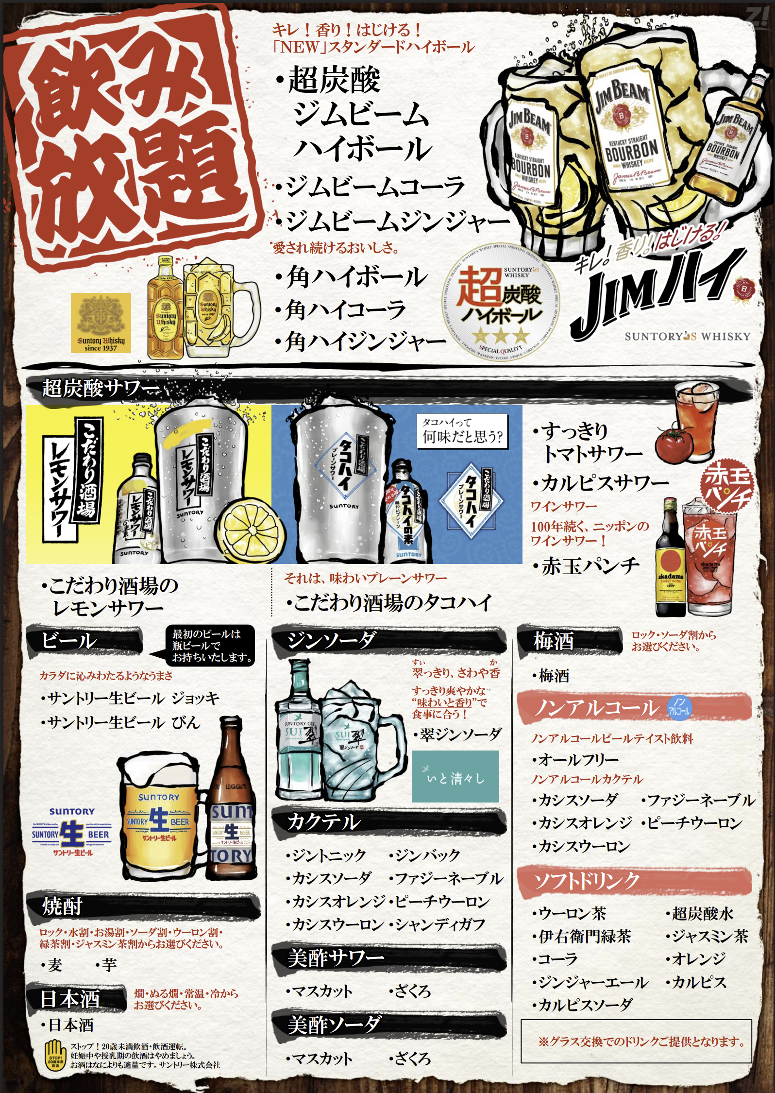 どちらの飲み放題プランも、ハイボールやビール、翠ジンソーダ、こだわり酒場のタコハイなど人気のドリンクが勢ぞろい!