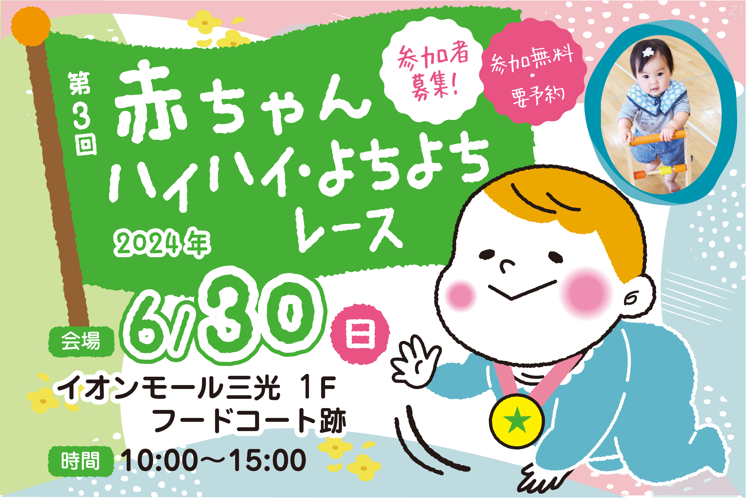 昨年度、大好評だった赤ちゃんハイハイ&よちよちレースを今年度もイオンモール三光にて開催!