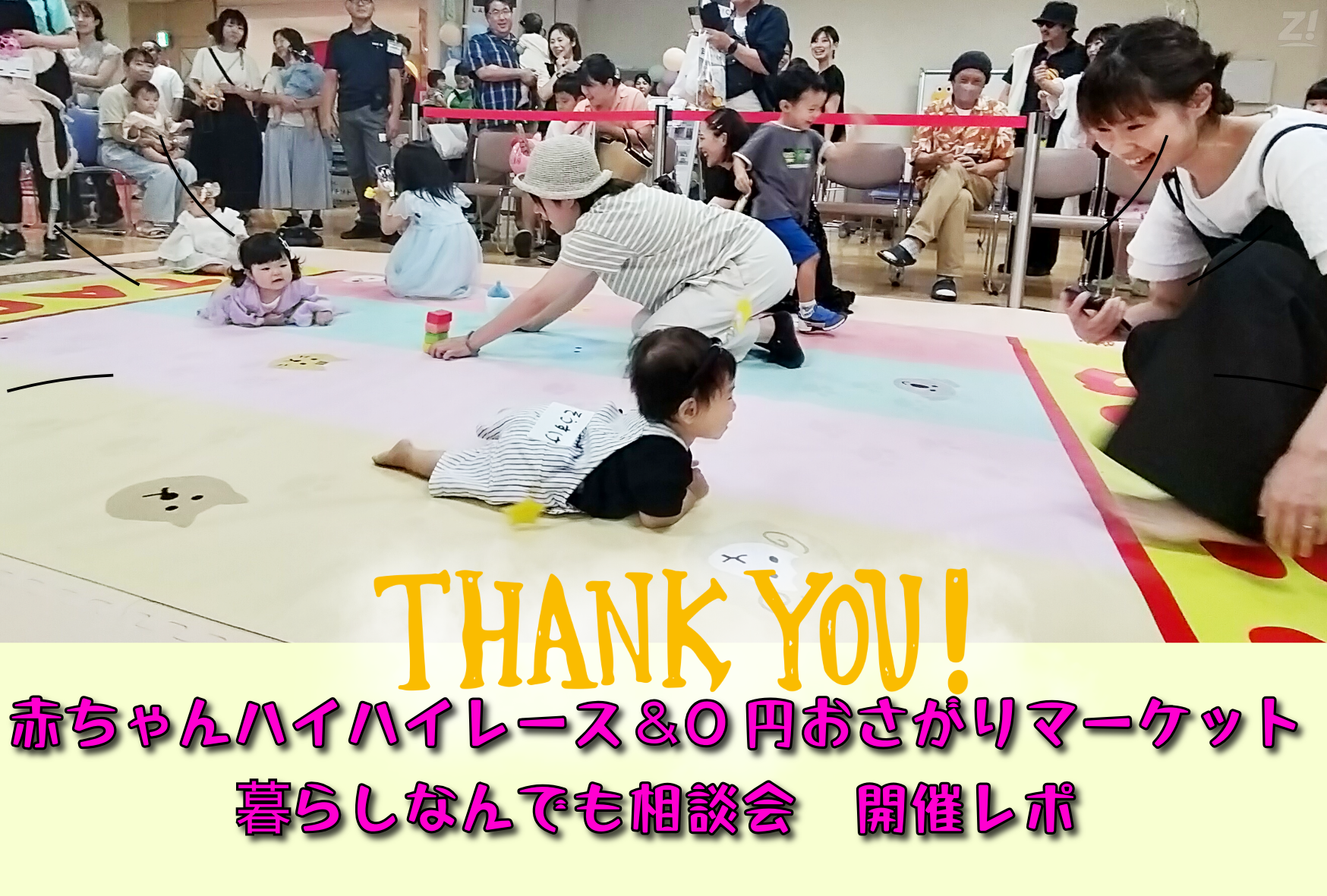 7月6日(土)、イオンモール三光にて開催された「赤ちゃんハイハイレース」&「0円おさがりマーケット」「暮らしなんでも相談会」には、たくさんのご家族連れにお越しいただき、笑顔と温かさに包まれた一日となりました。