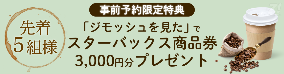 スターバックス商品券3,000円分を先着5組様にプレゼント!