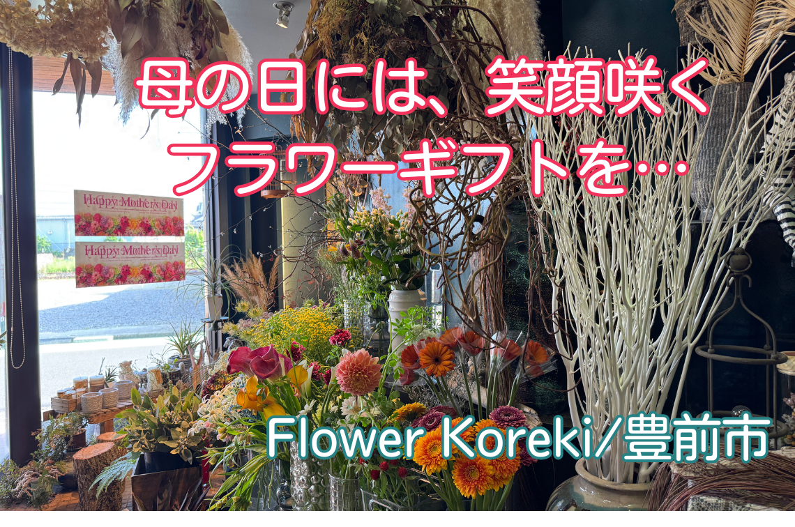 豊前市宇島にある『Flower Koreki(フラワー是木)』は、定番の生花(せいか)はもちろん、ドライフラワー ・花鉢(はなばち)・観葉植物など…さまざまな種類のお花を取り揃えています。
