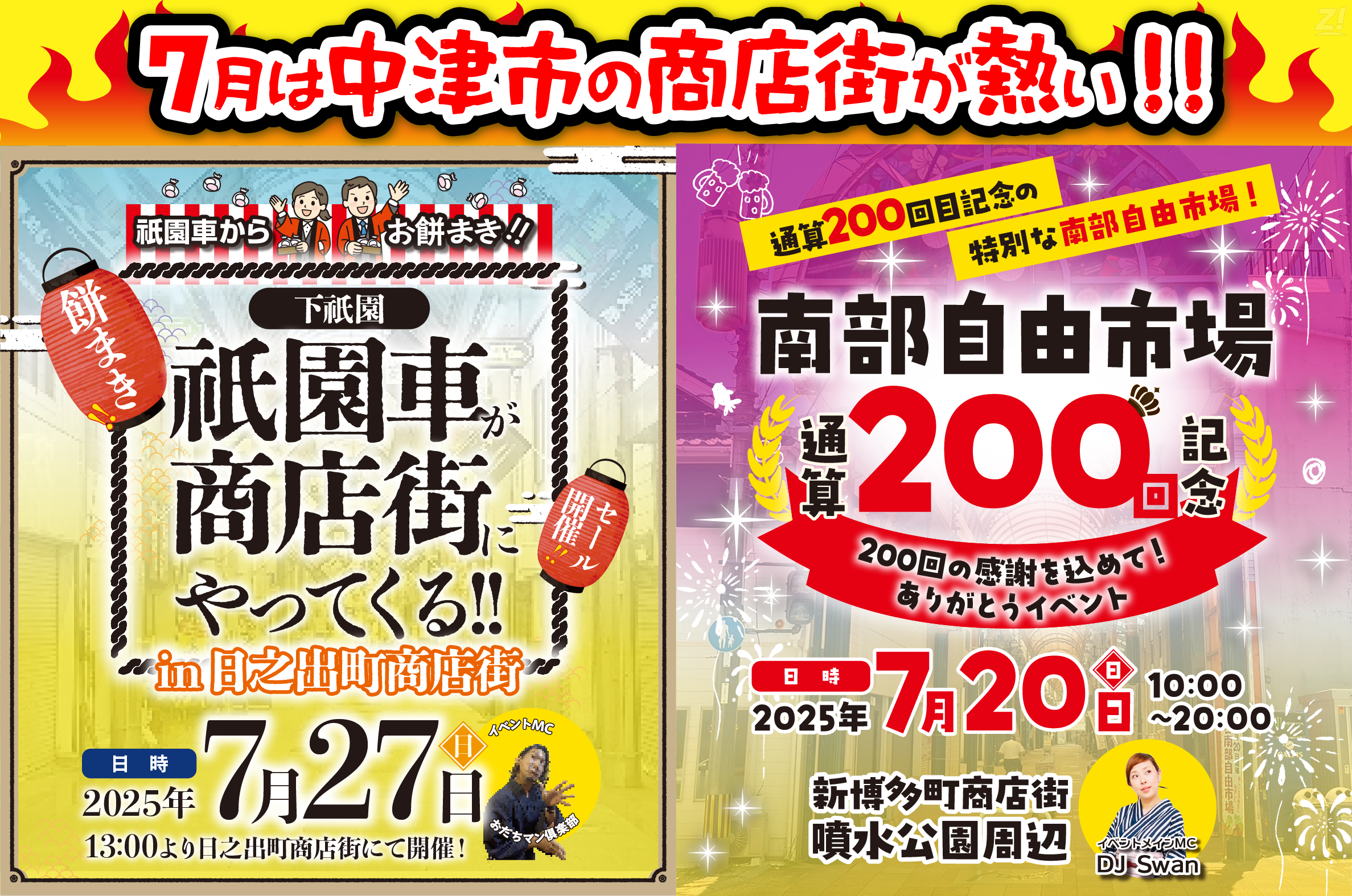 伝統と賑わいが交差する「祇園車が商店街にやってくる」、そして地域の感謝を込めた特大企画「南部自由市場200回記念ありがとうイベント」。
