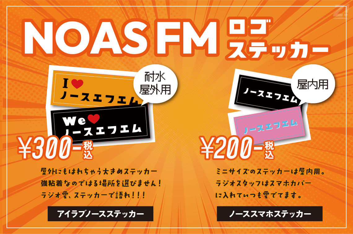 地域密着のFMラジオ局 NOAS FM が、イベント会場限定で販売していたオリジナルグッズを、多数のお問い合わせをいただいたことを受け、 通販受付を開始 いたしました!