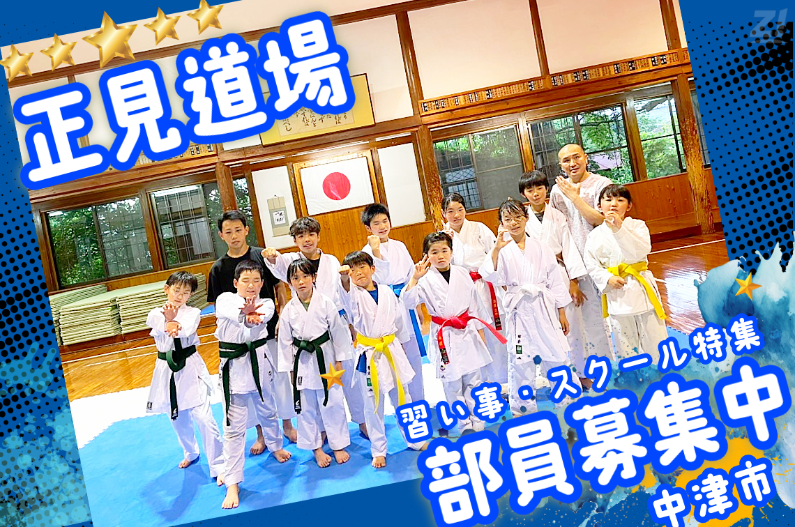 中津市・豊前市・上毛町から、幼年~中学生までの子どもたちが集まり、週3回の練習に励んでいる「正見道場」。空手を通して、元気に・明るく・楽しく!そして、心豊かに成長していくことを目指している教室です。