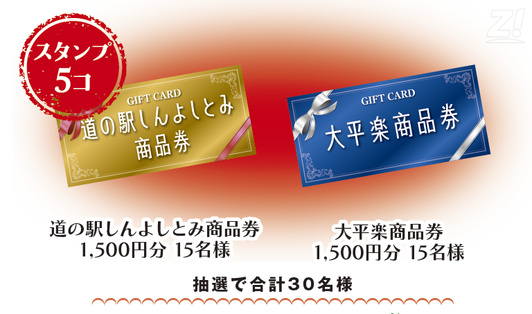 - 道の駅しんよしとみ商品券(1,500円分) 15名様