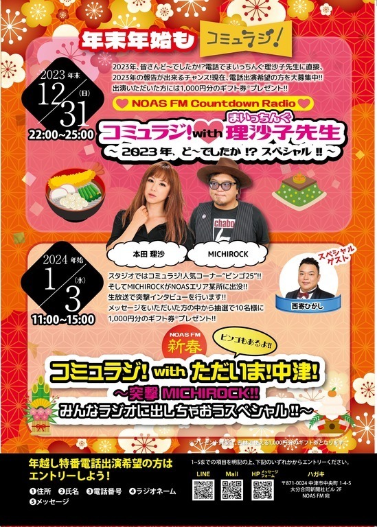 ■NOAS FM新春スペシャル!『コミュラジ!!withただいま!中津!突撃MICHIROCK!みんなラジオに出しちゃおうスペシャル!!〜』(2024.1/3(水)11:00~15:00)