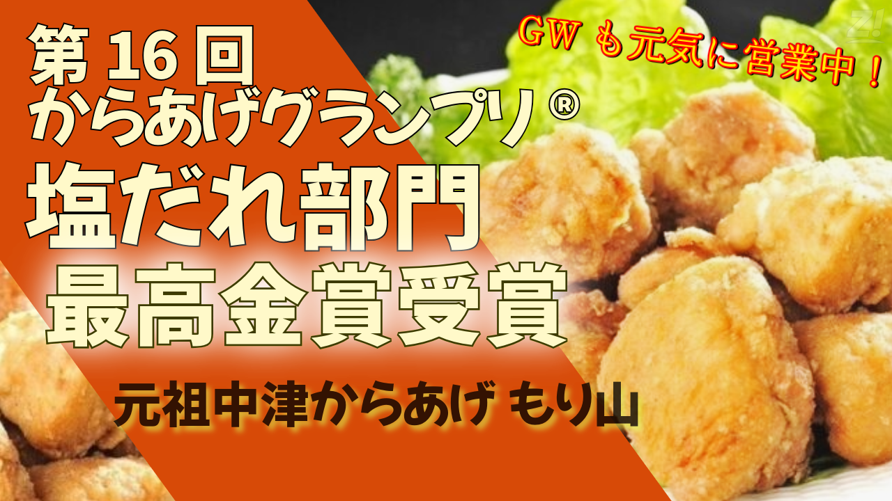 第16回からあげグランプリ®で、「元祖!中津からあげ もり山 」が今年も塩ダレ部門で【最高金賞】を受賞!