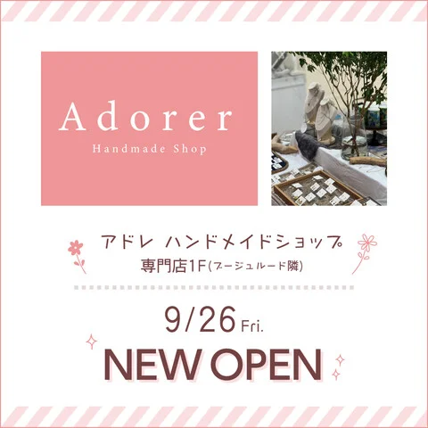 【Adorer(アドレ)】イオンモール三光専門店1階(ブージュルード隣)に2025年9月26日(金)よりオープン!