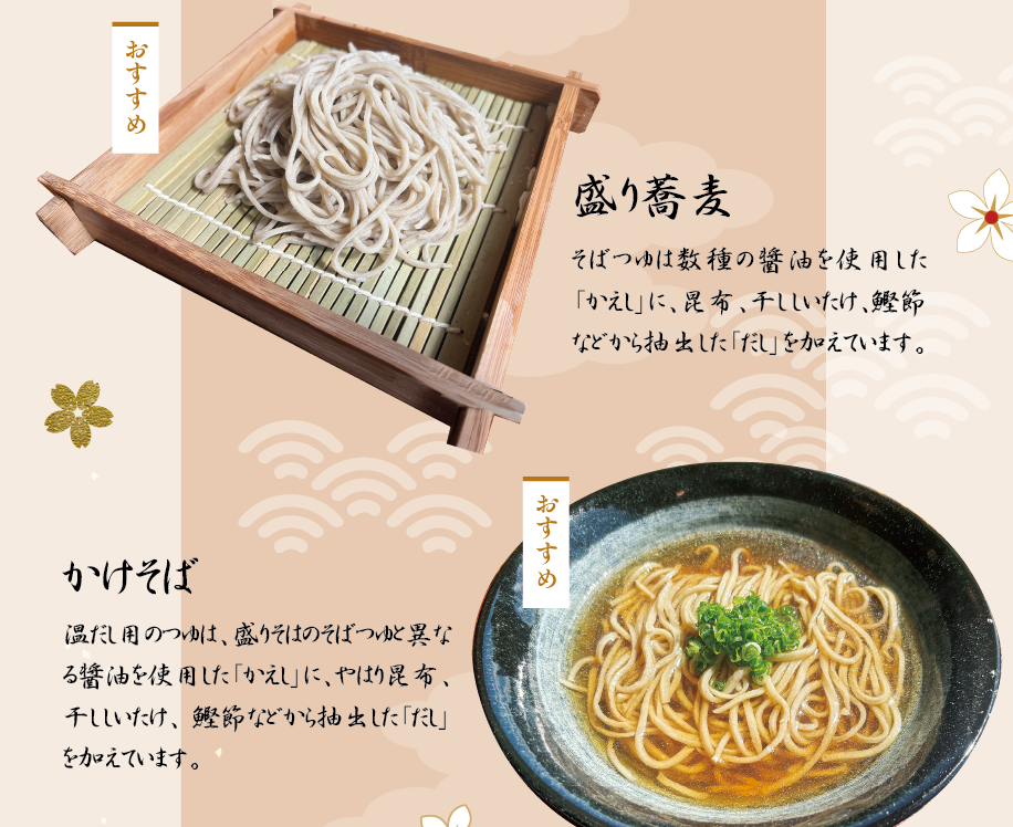 香りを存分に楽しめるよう、やや太め二八蕎麦で提供しています。