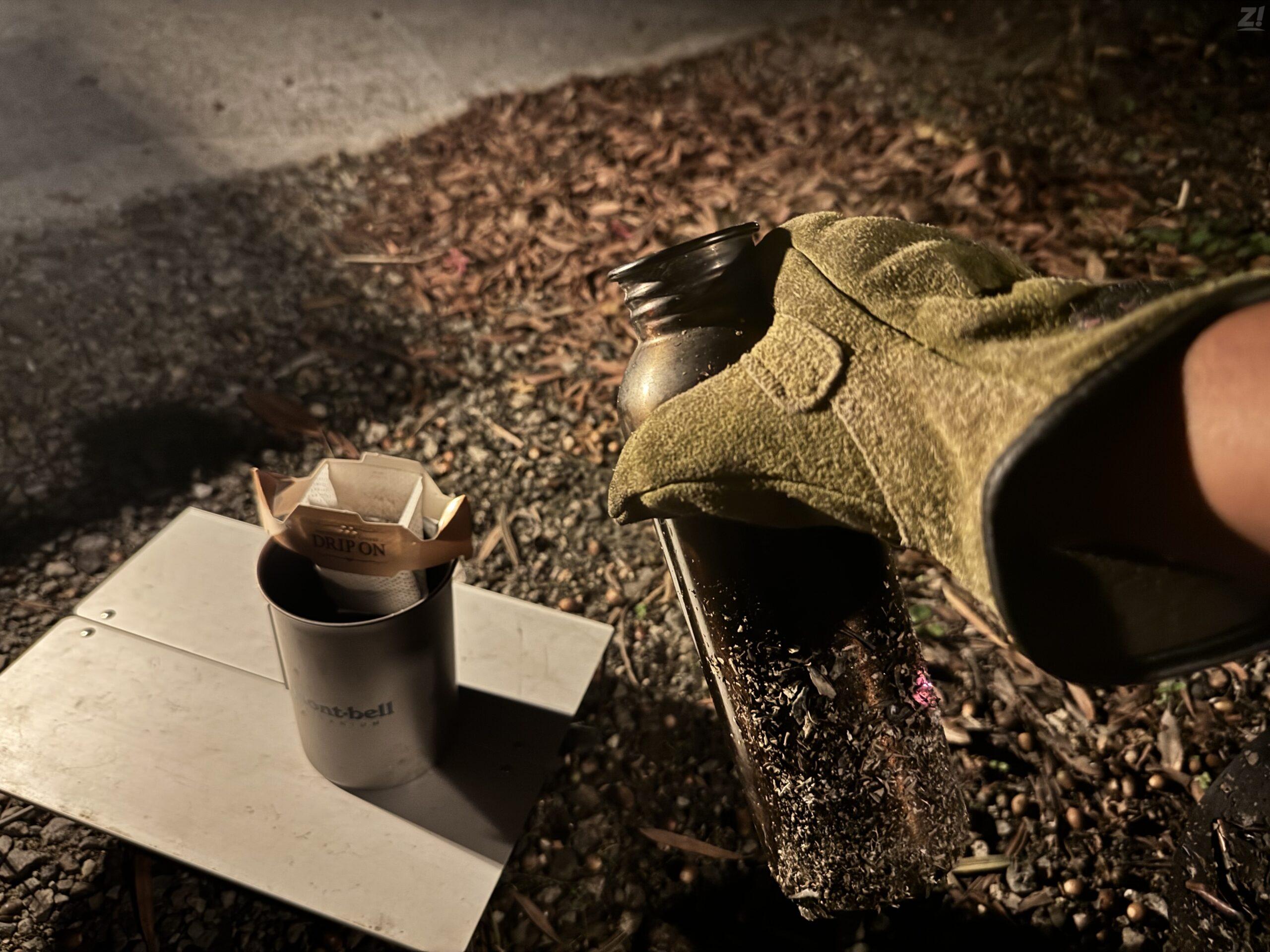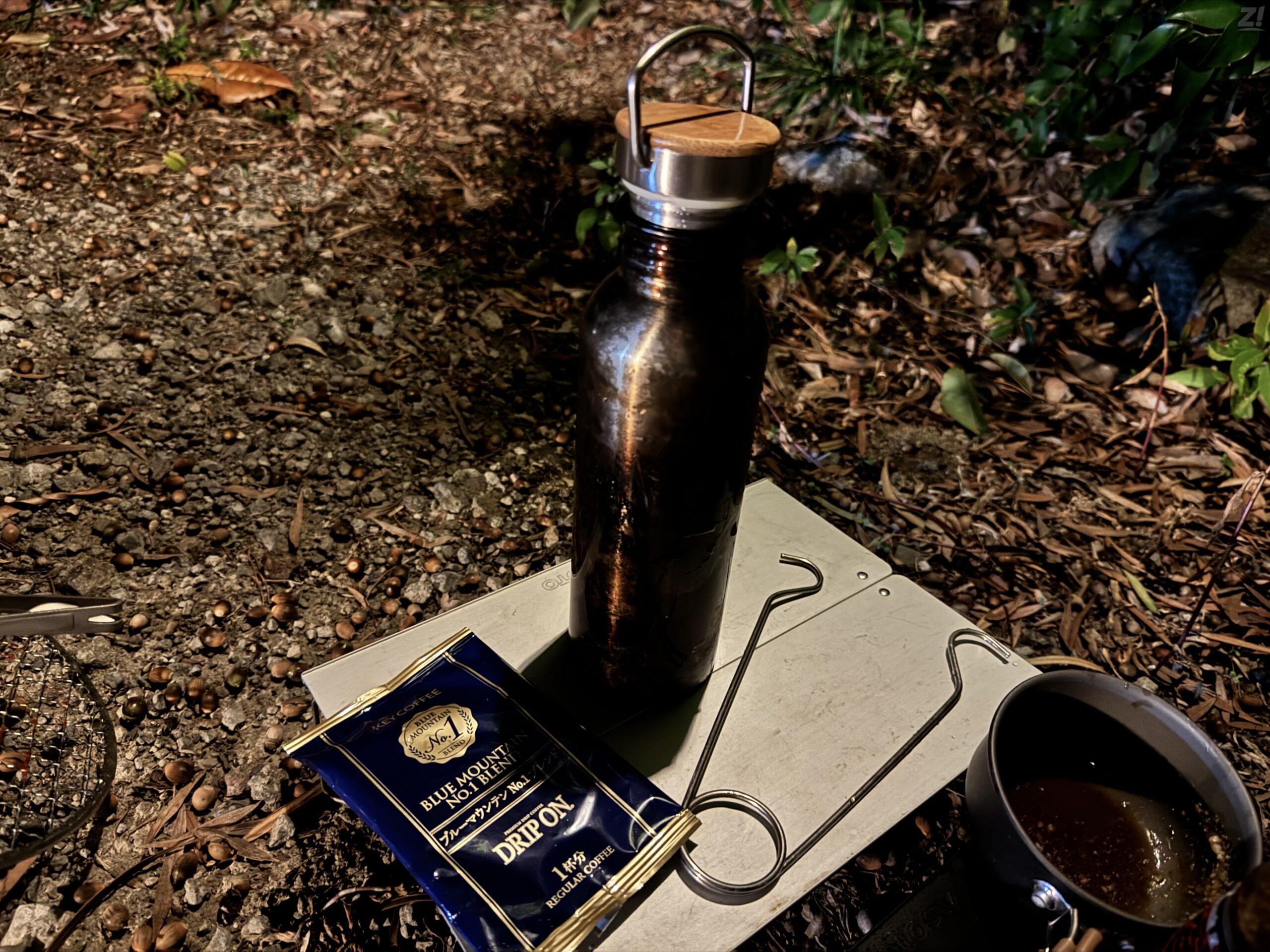 外で飲むコーヒーは格別なんで市販のドリップコーヒーで良し。