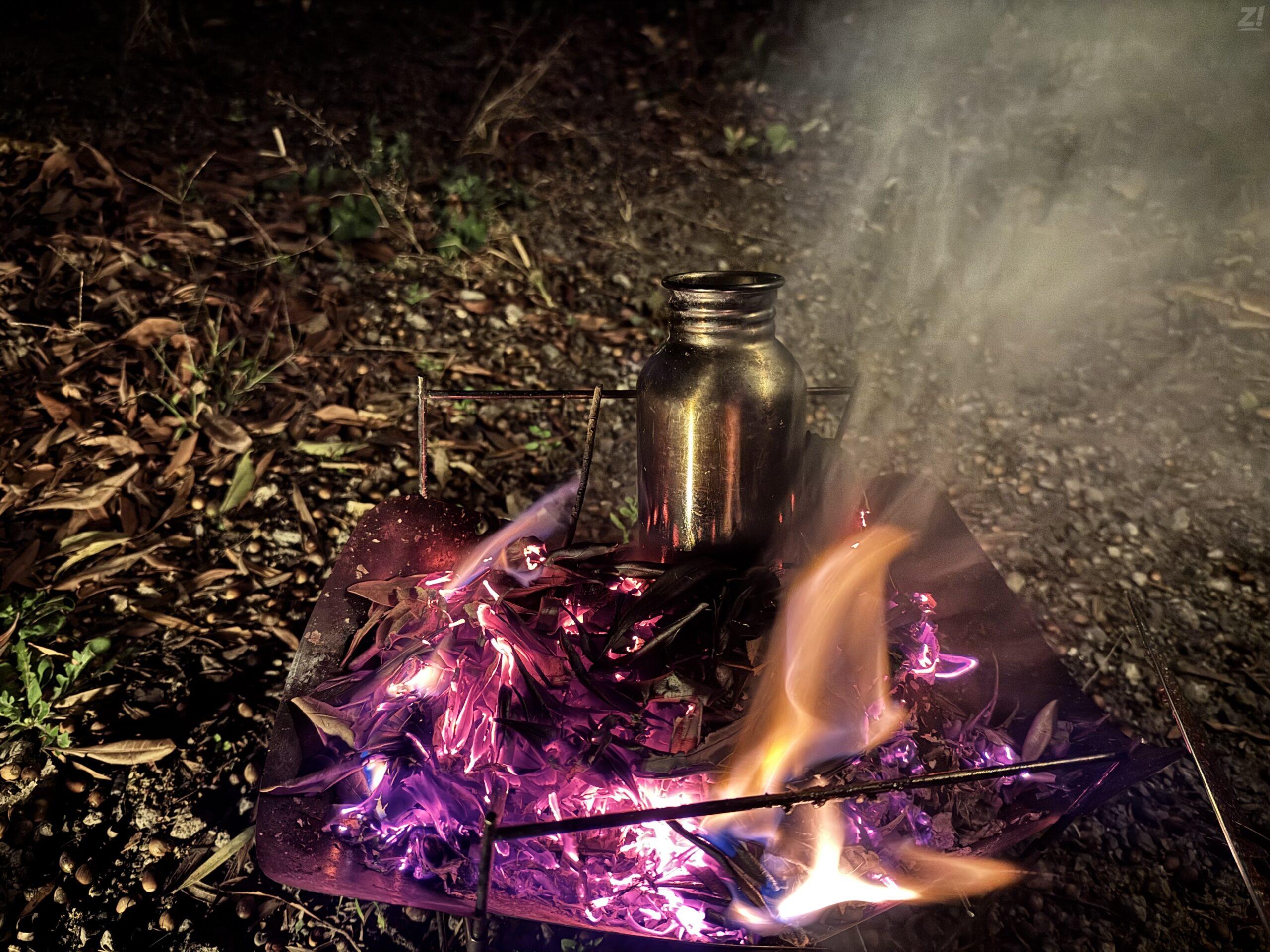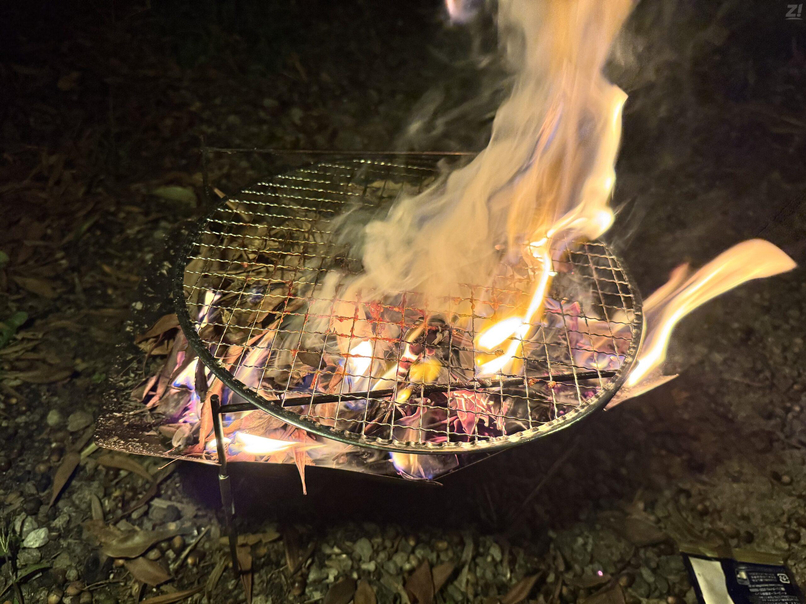 その辺のはっぱや小枝をがさっと入れて、めいっぱい吸い込んだ肺活量の一撃でスペシャルファイヤー。気分はダルシム。そうヨガファイヤーではなくヨガフレイムだ!