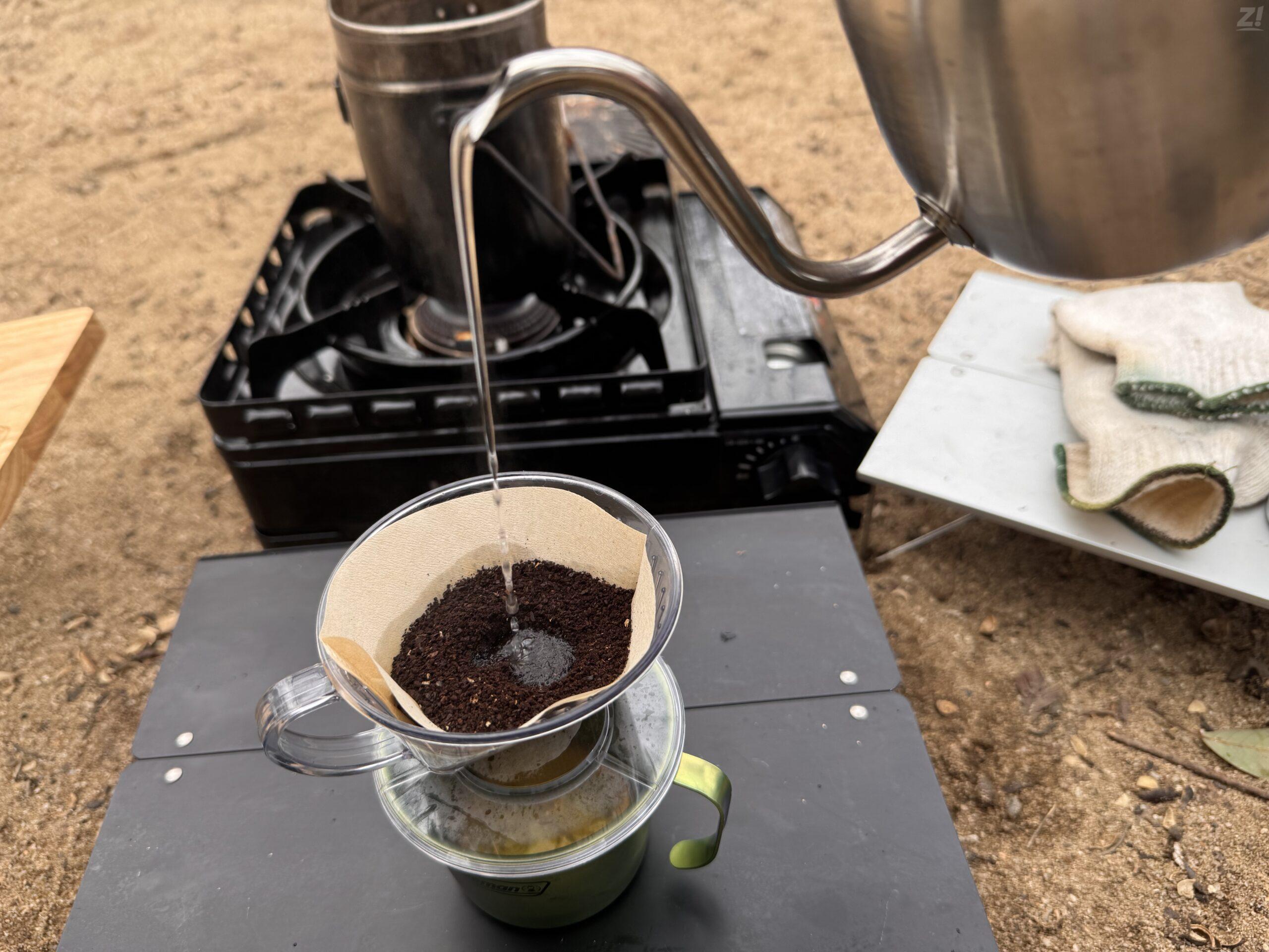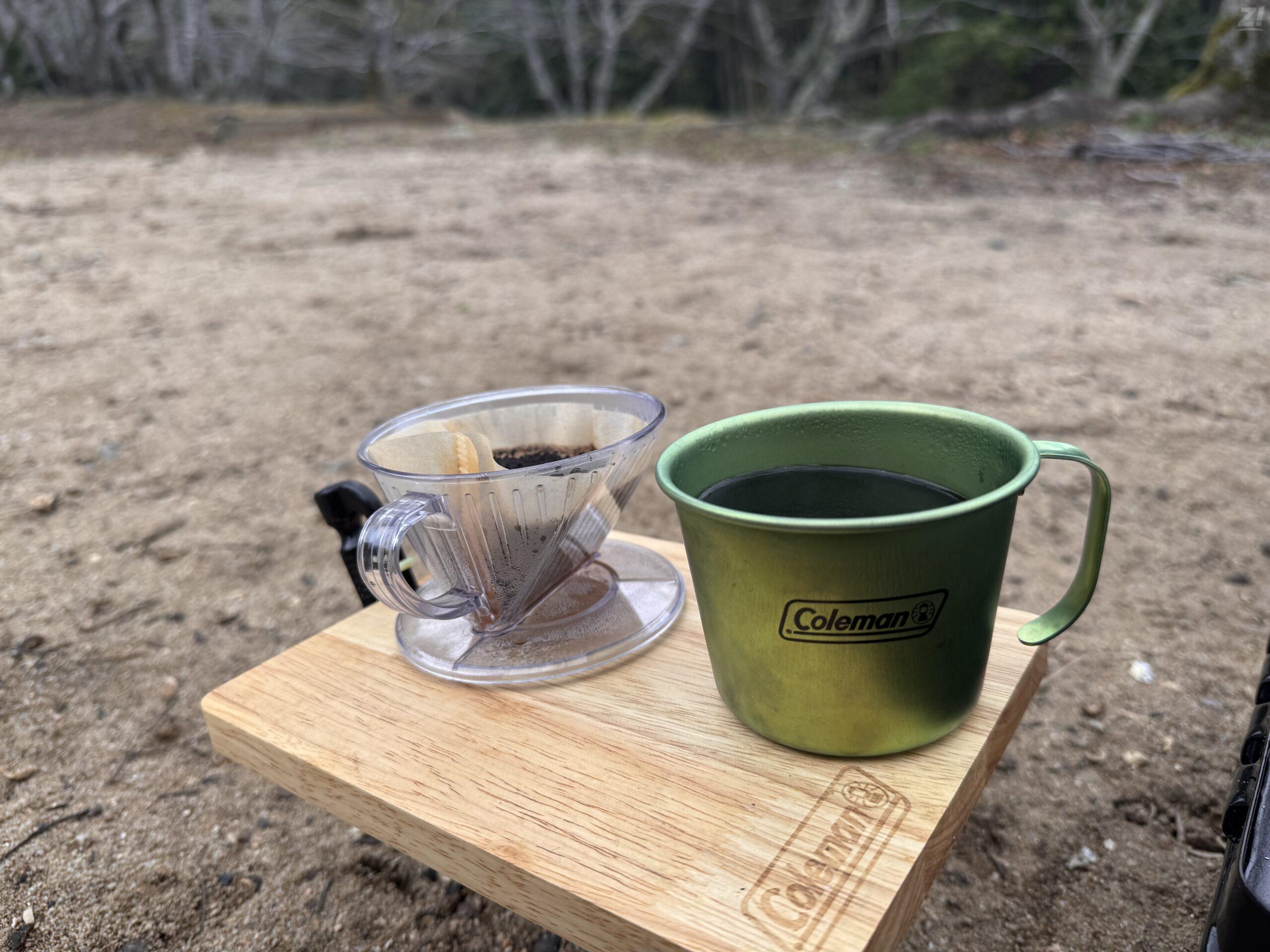 寒空にコーヒー。このロケーションならインスタントでも充分うまいだろうねー。