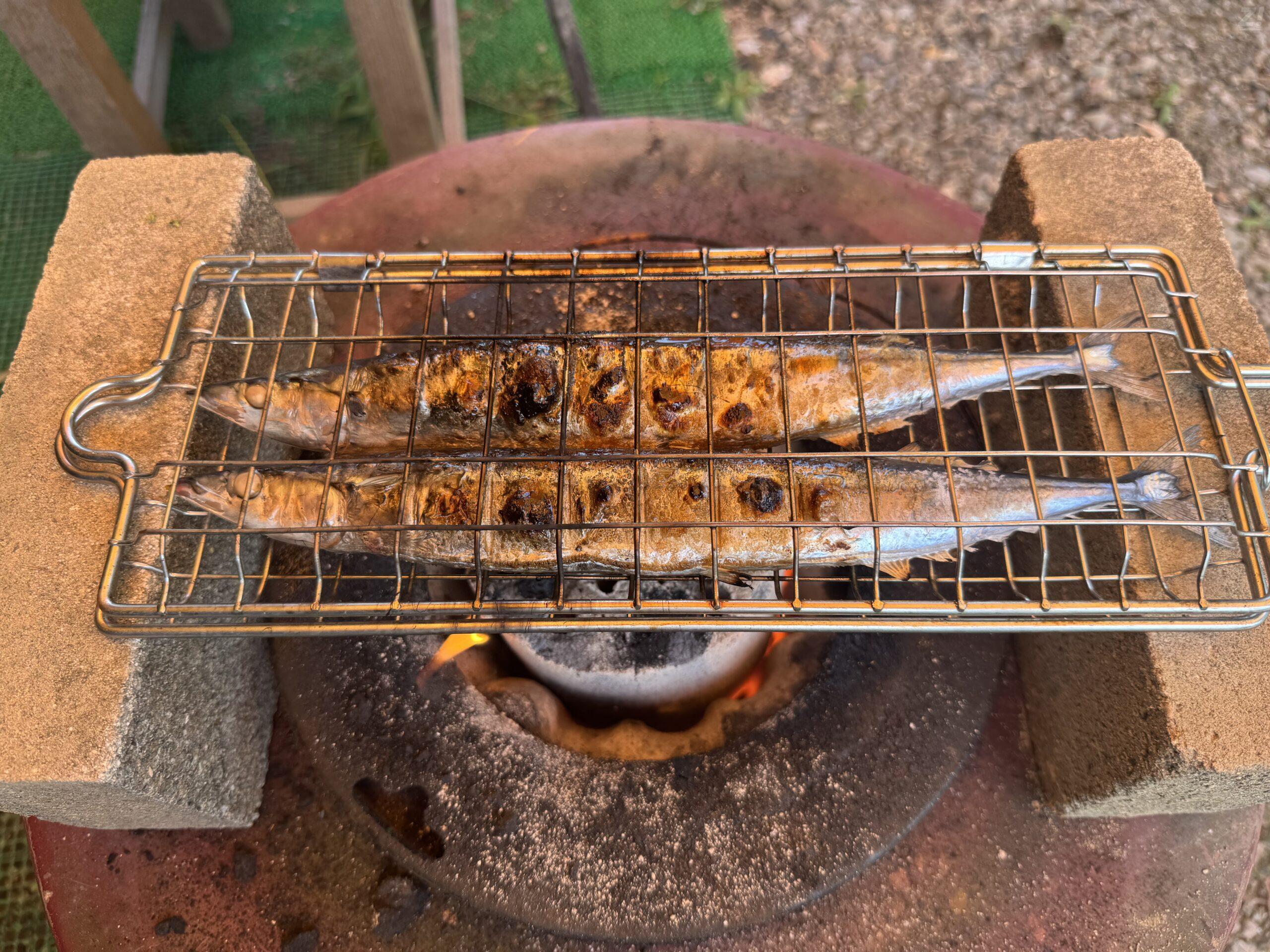 そのころ、おいちゃんはさんまを頭まで食べる。きれいに食べる。