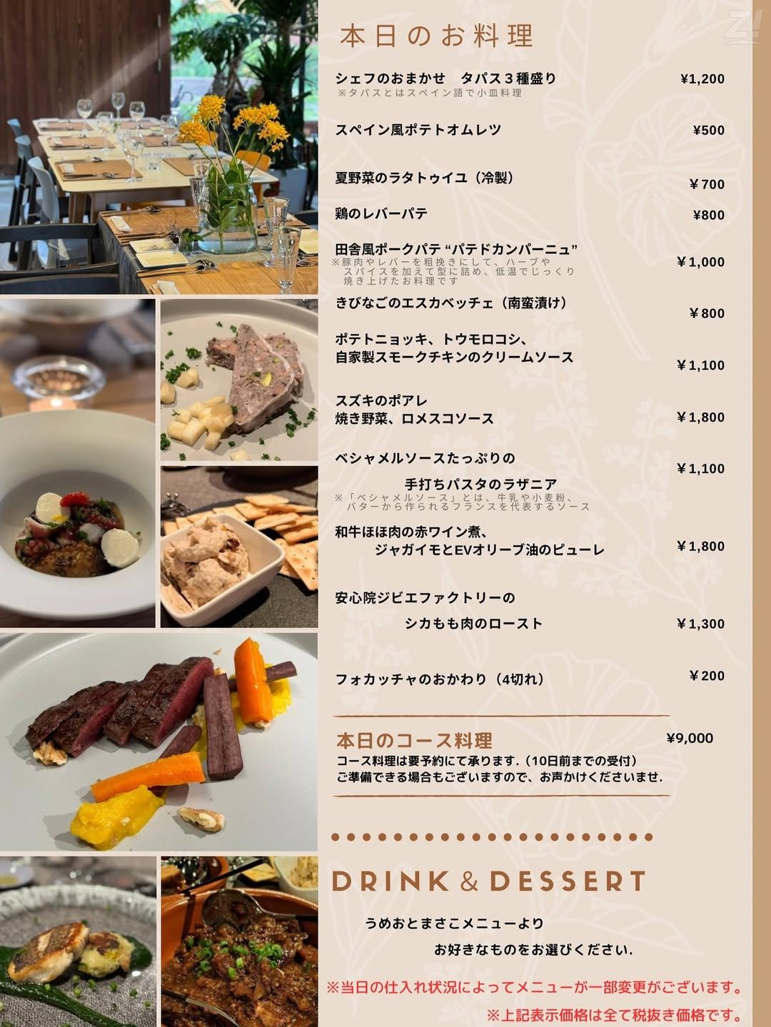 通常のカフェメニューに加え、本格スペイン料理と心安らぐ空間が織りなす、上質なひとときをご用意しました。大切な方とのディナーや、華やかな女子会、記念日のひと夜やいつもと違った夜の時間を過ごしたい方ぜひ喧騒から離れた時間をお楽しみください。。