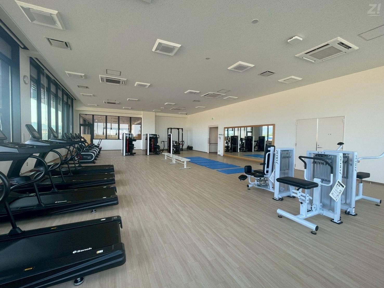 約170平方メートルの広々とした室内で各種トレーニング機器やストレッチマットなどを利用して快適に運動を行うことができます。更衣室(男女)、鍵付きロッカーもあるほか、室内には専門のトレーナーが常駐し、初心者でもアドバイスや指導を受けながら安心して利用できます。