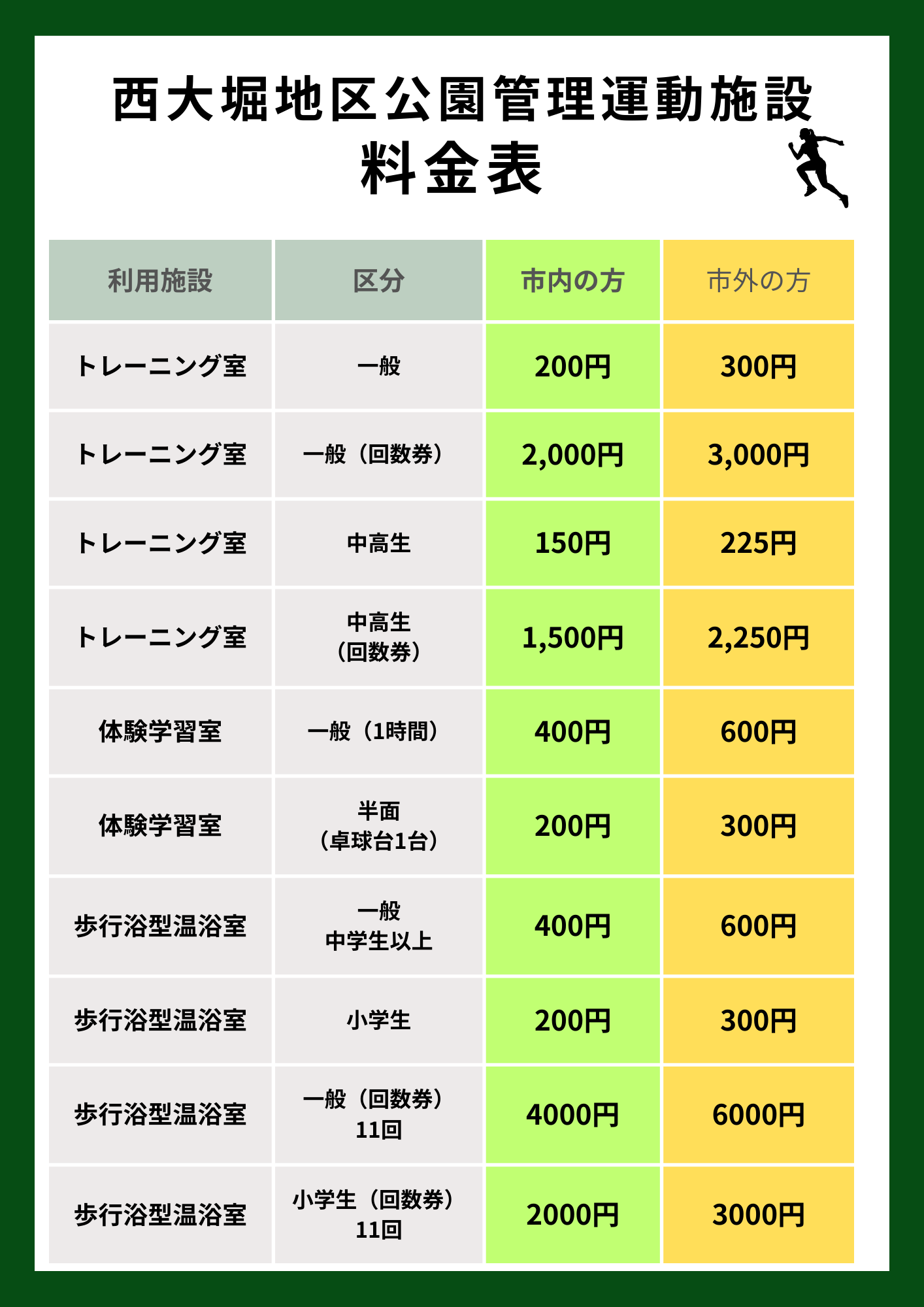 | 店舗名 | 西大堀地区公園管理運動施設 受付カウンター |