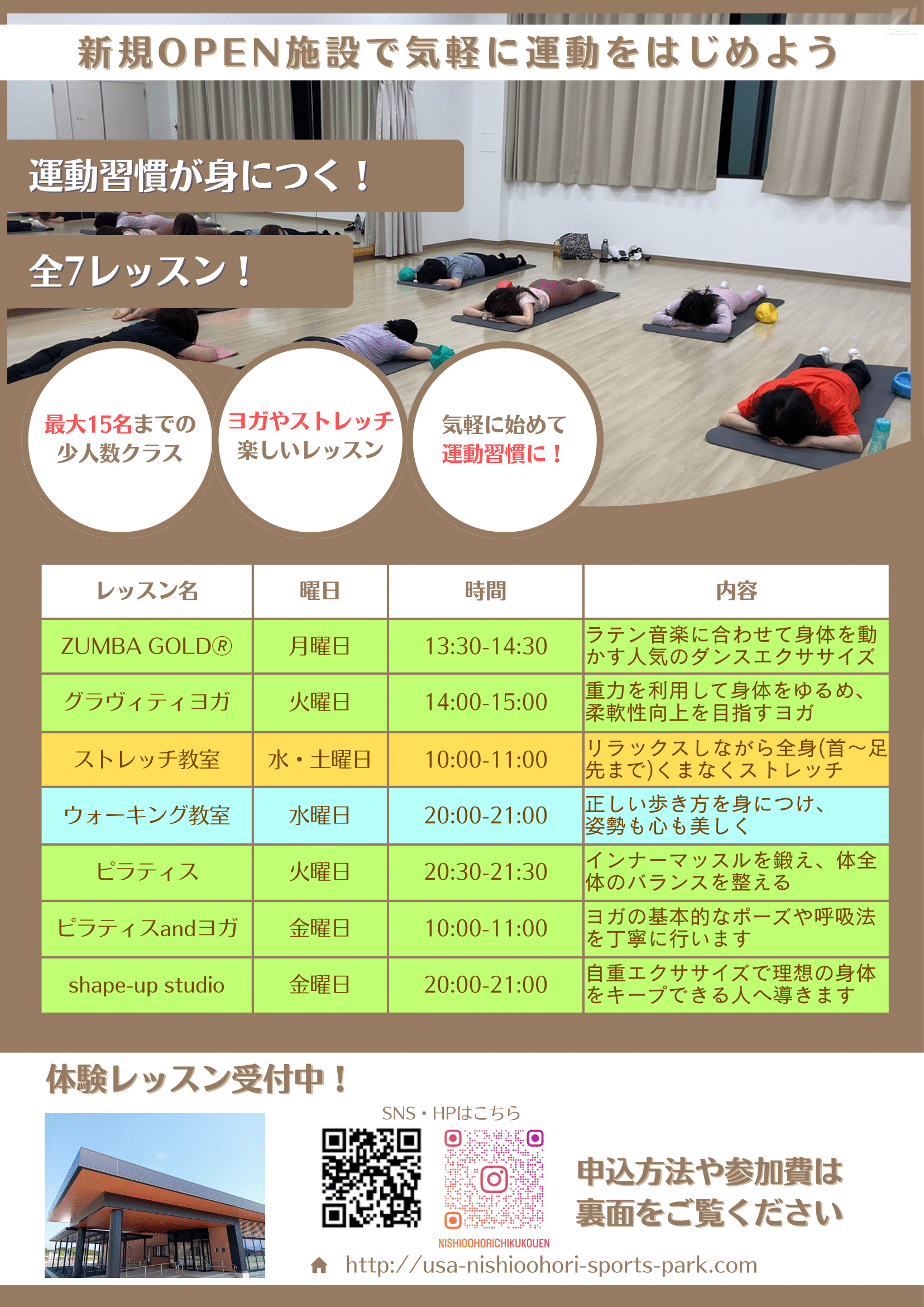 西大堀地区公園 管理運動施設では、定期教室を開催しています。