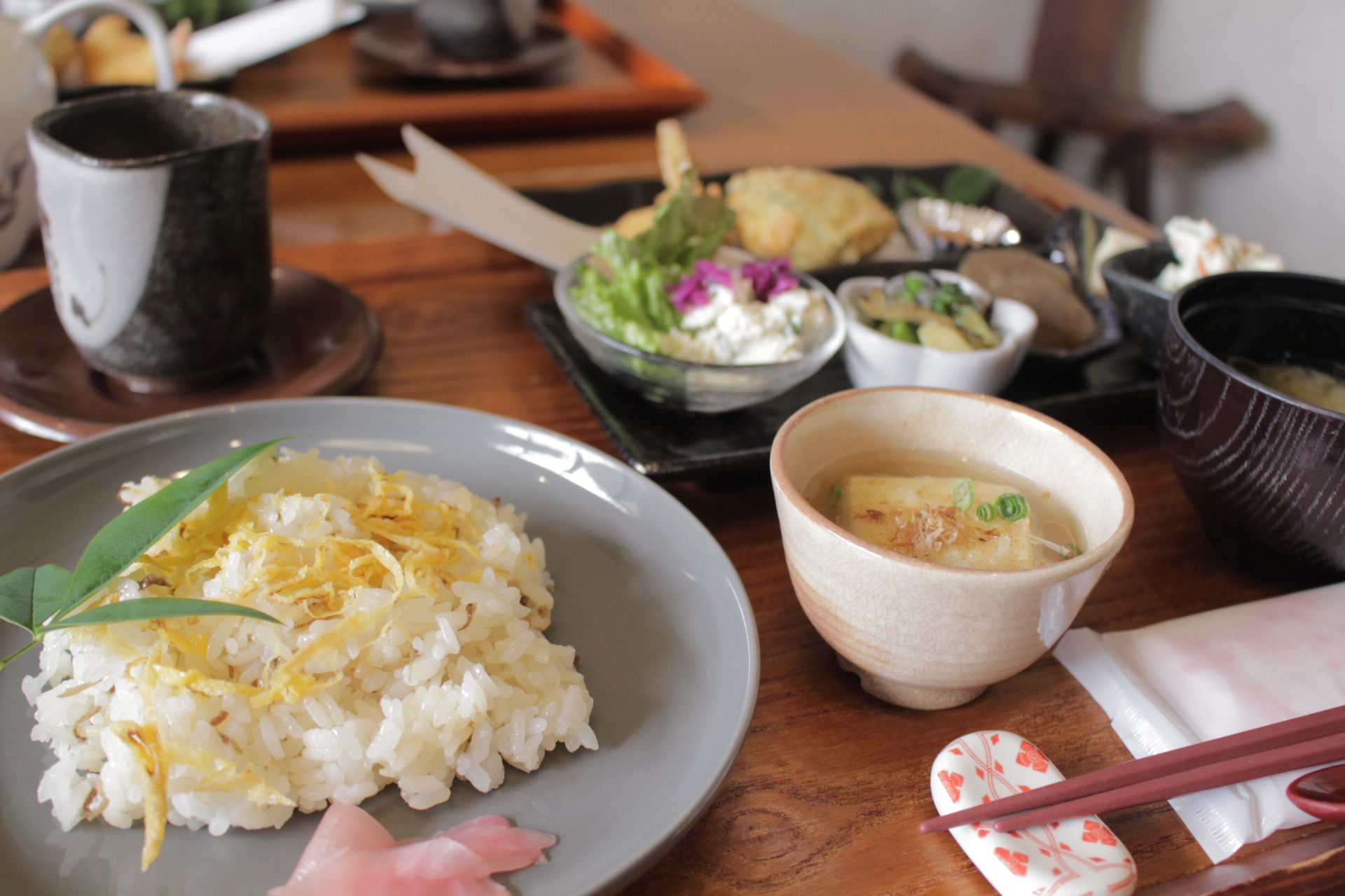 宇佐神宮よりも少し南側に位置する、のどかな上矢部(かみやべ)エリアにあり、周囲が自然に囲まれた隠れ家的な雰囲気の「お食事処 侑」。こちらは知る人ぞ知る手作りの美味しいランチが食べられる古民家のお店になります。