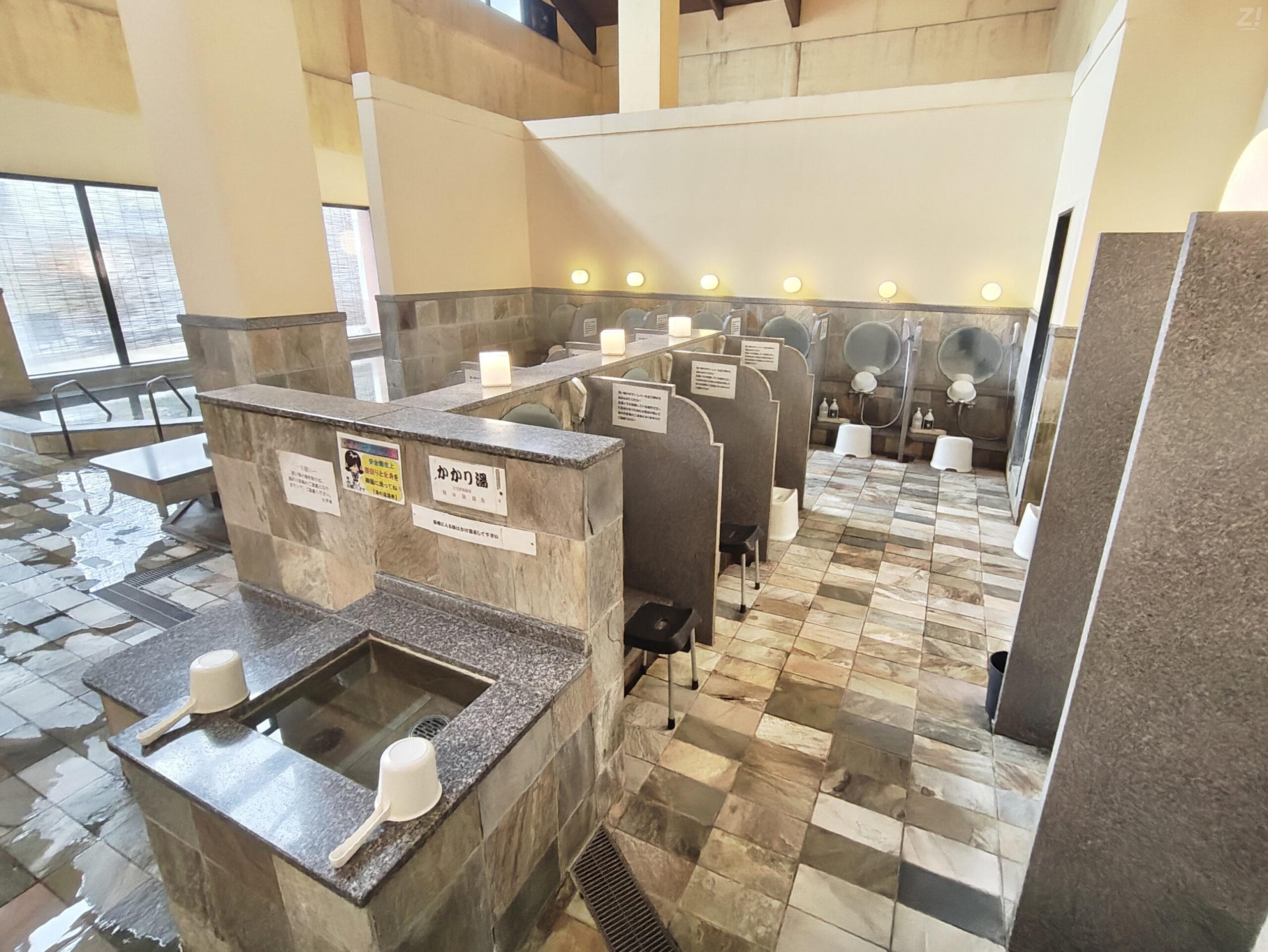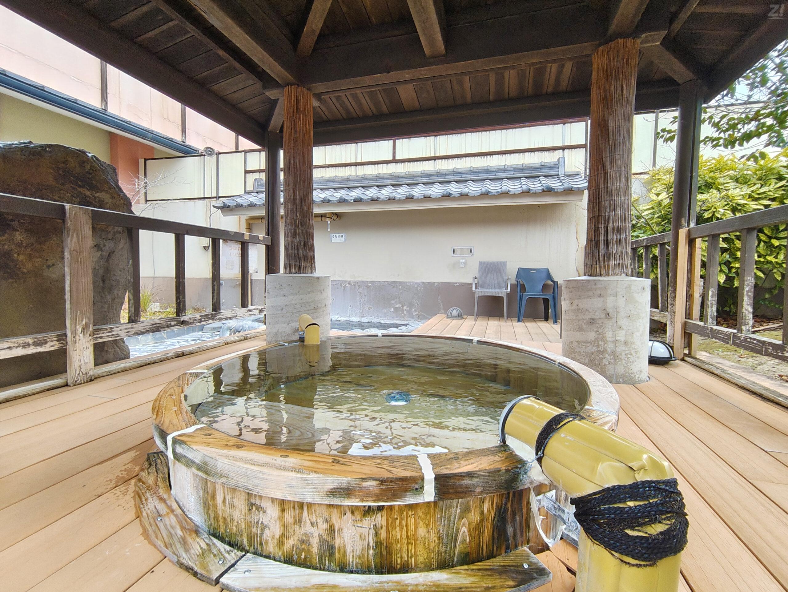 「もみじの湯」では風情ある桶風呂の露天が楽しめ、「とんぼの湯」では美肌成分を配合した白い濁り湯の「薬湯(モヤモヤ湯)」やジャグジーが人気。さらに、電気風呂やサウナもあり、ととのいイスもちゃんと設置してありました。