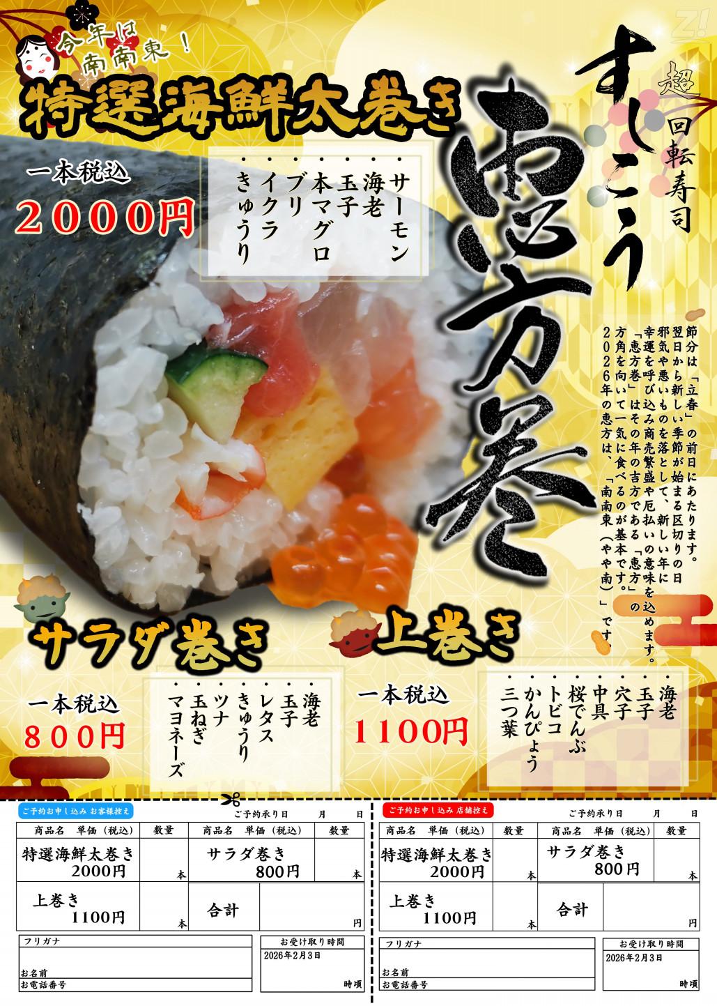 超回転寿司すしこうの恵方巻、現在予約受付中です♪