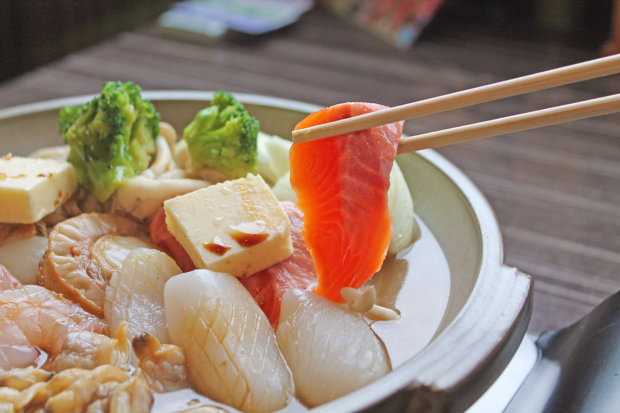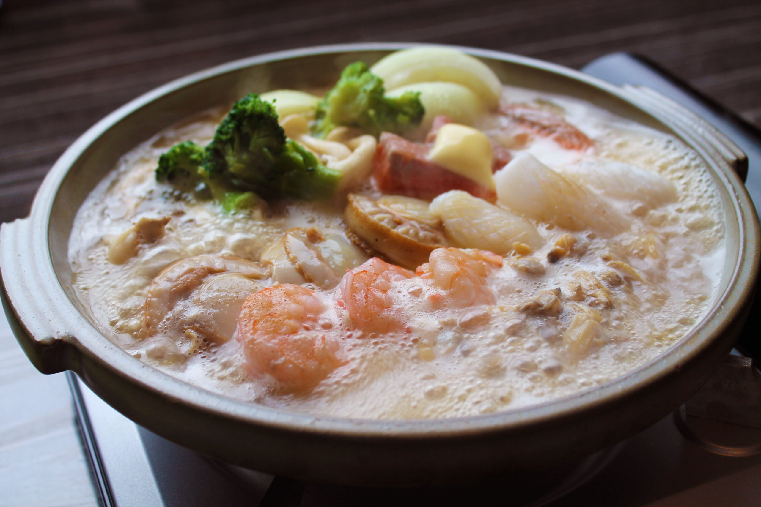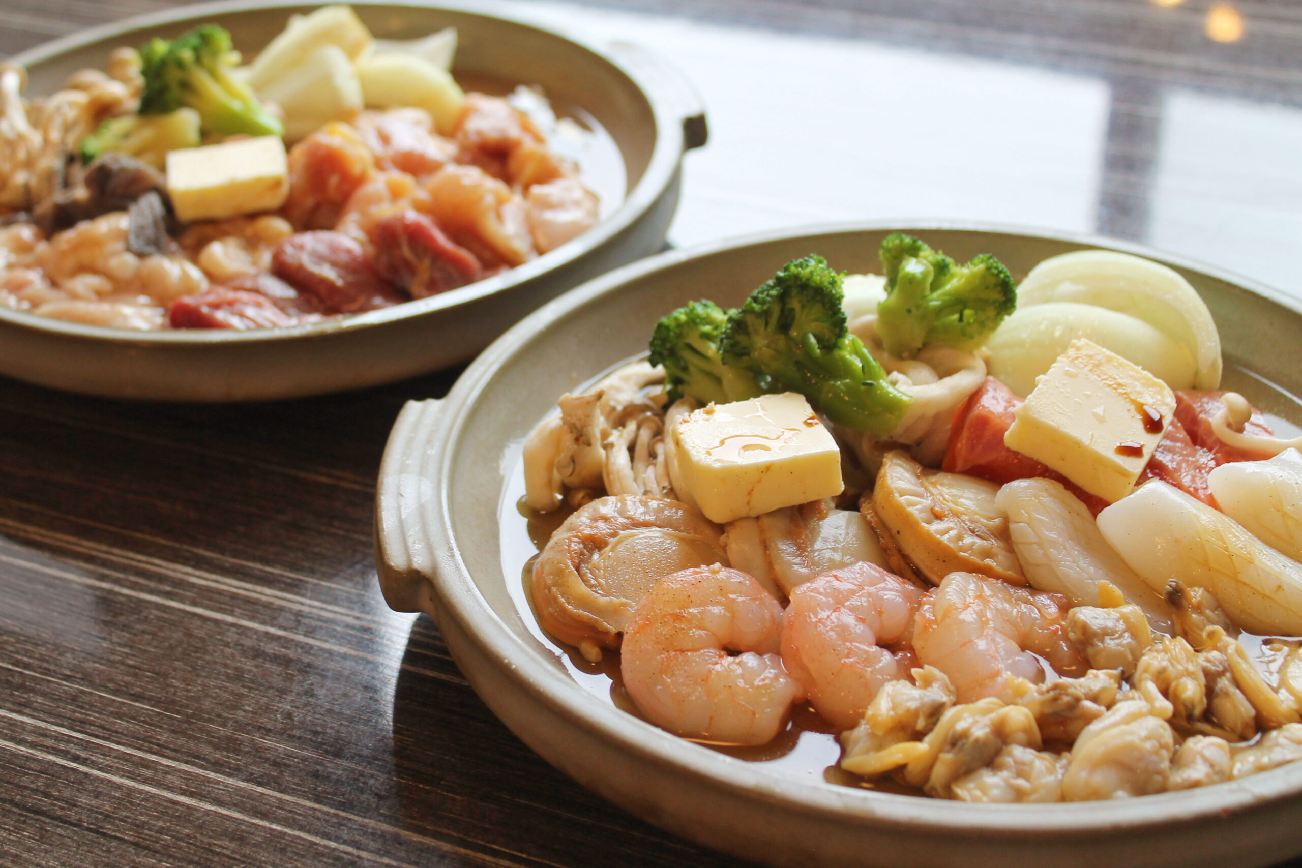 陶板焼きとは、新鮮な魚介類や肉・野菜を特別仕込みのスープとともに陶器の上で焼いていただく料理のこと。