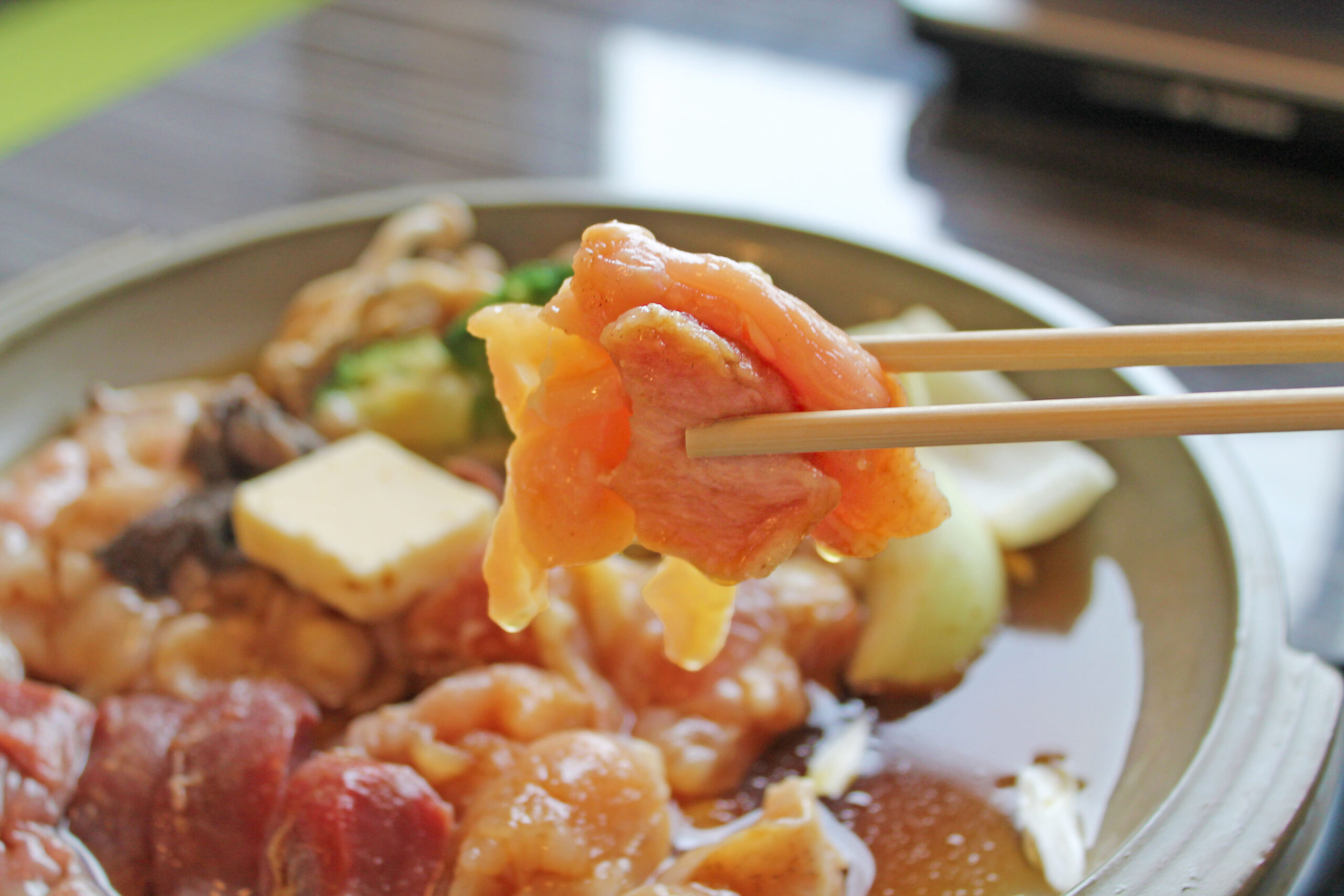 板長が厳選した海の幸を贅沢に盛り合わせた一品。エビ・牡蠣・サーモン・イカ・帆立など、旬の海鮮がたっぷりと並びます。陶板の熱で凝縮された磯の香りと、プリッとした食感はたまりません。自家製出汁との相性も抜群で、焼き上がった後の出汁には魚介の旨味とバターのコクがまろやかに混ざりあい、極上の味わいです。