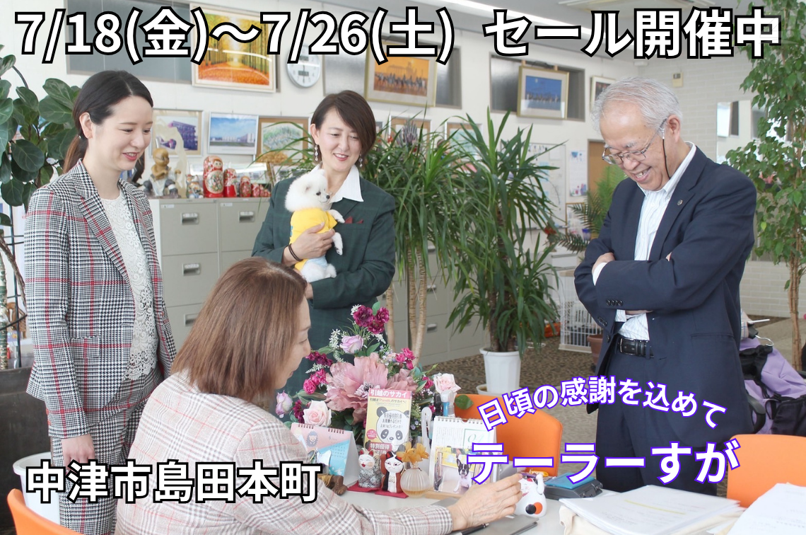 そんなテーラーすがでは【7月18日(金)~7月26日(土) 9:00~18:00 ※7/20(日)定休日除く】までセールを開催しています。ぜひこの機会に、足を運んでみてくださいね。