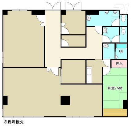 広々としたワンフロアタイプで、住居兼店舗、会議室や受付スペースの