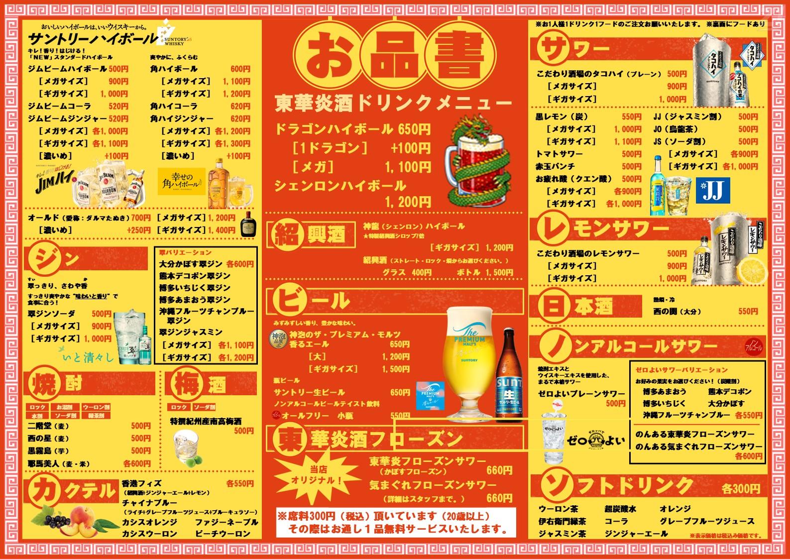 特に注目は、パワーアップしたドリンクメニュー!大分ならではの「かぼす翠ジン」や、見た目も華やかな東華炎オリジナルドリンク「東華炎フローズンサワー」など、ここでしか味わえない一杯が揃いました。