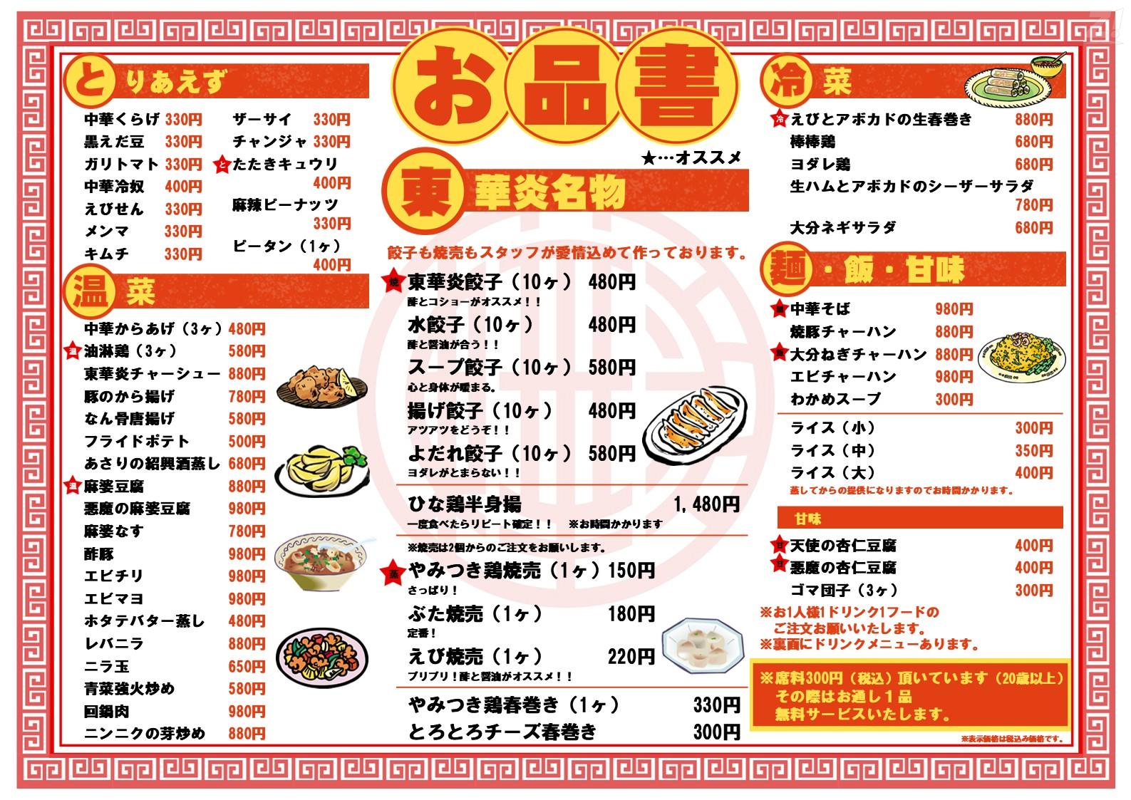 お待たせいたしました!中津市で人気の「東華炎」が、2月1日よりフード&ドリンクメニューを大幅に一新します。