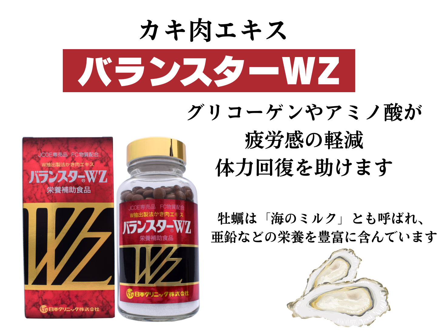そこで当店では、牡蠣肉エキスを中心に亜鉛やタウリンなどの栄養を含むバランスターWZをご紹介しています。